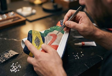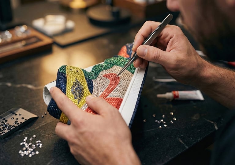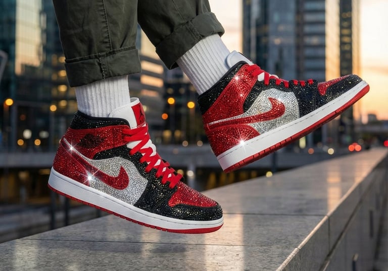 Step into the world of Sneaker Art & Customization, where everyday footwear transforms into handcrafted luxury masterpiece. Each pair is adorned with thousands of individually hand set rhinestones, turning classic sneakers into high-quality designs that blend fashion, craftsmanship, and brilliance, crafted to shine, designed to stand out.